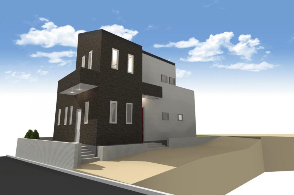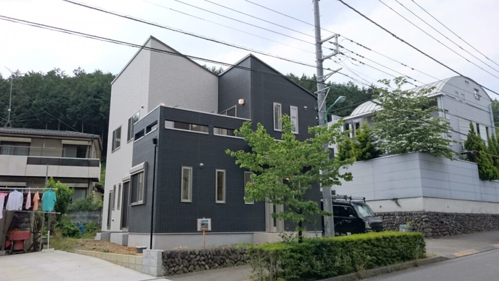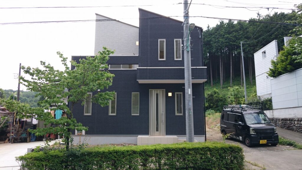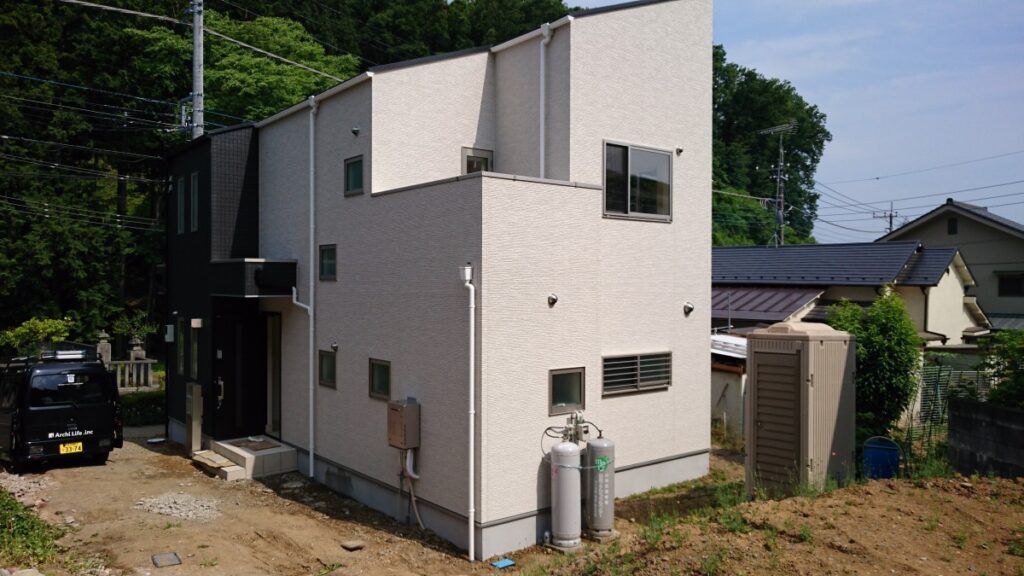 山間の土地に住居と家業の水道設備会社の事務所を営む為の建物を承りました。