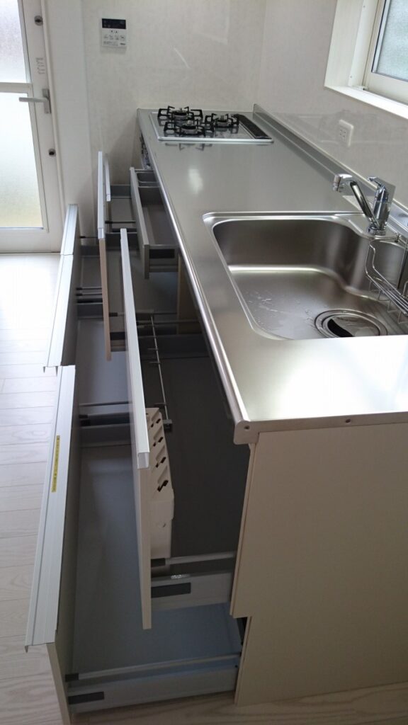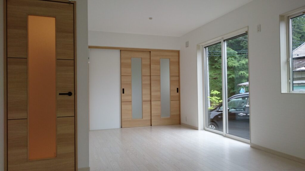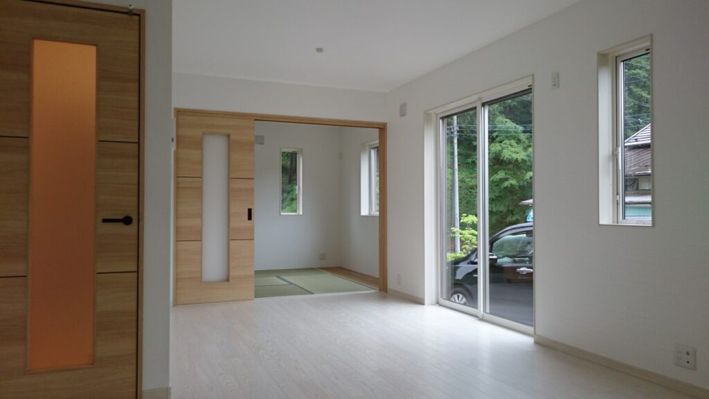 山に近い部分はお施主様自身、水道業を営んでおられるため資材置き場とされるとのことです。