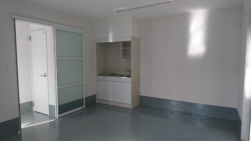 さらに緩くつなぐために、半透明のスクリーンパーテーションにて空間を間地切っています。