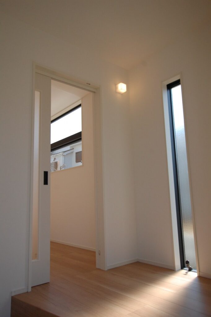 玄関には南面にスリット窓を配置し、明るく広い玄関を演出しています。