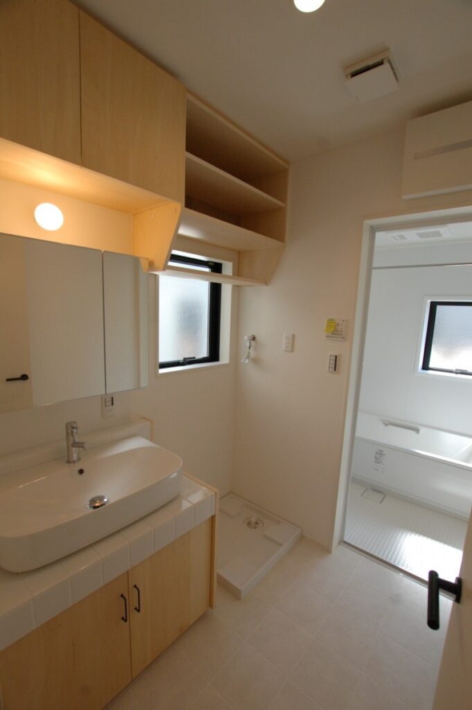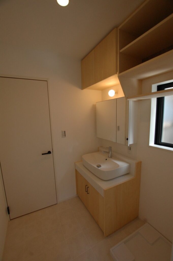 洗面台は既製品ではなく造作することで、個性的な空間を作っております。