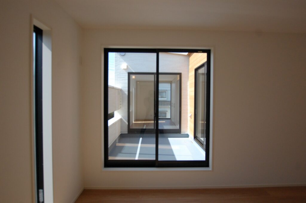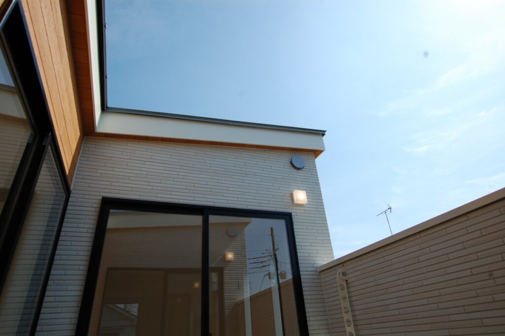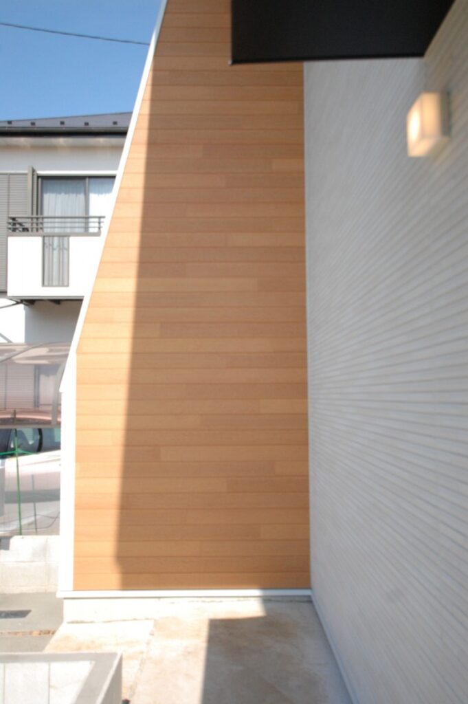 玄関横の壁は北側隣地からの視線を遮ります。北側隣地は南側に採光のため、大きな窓を設置することが多いです。