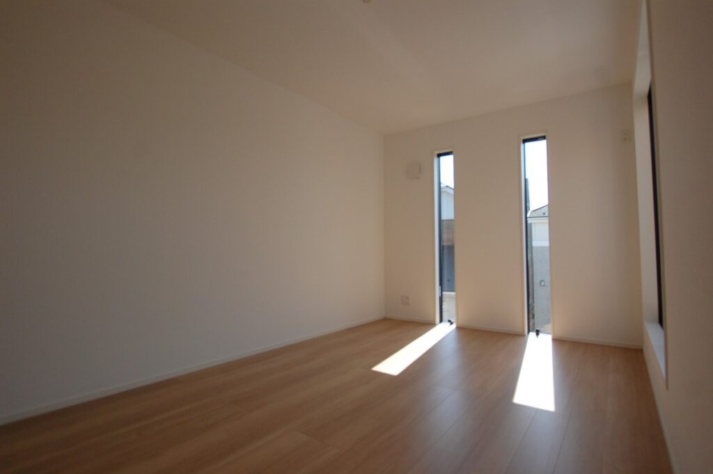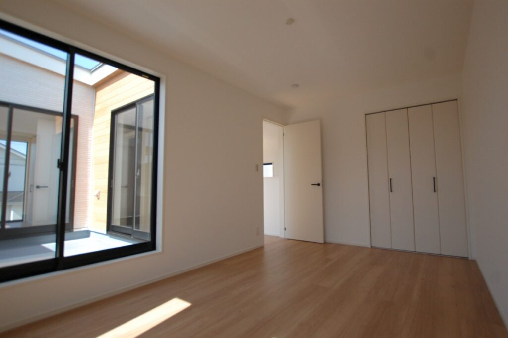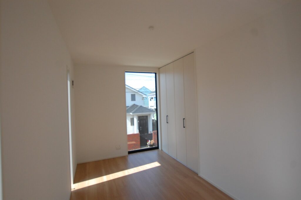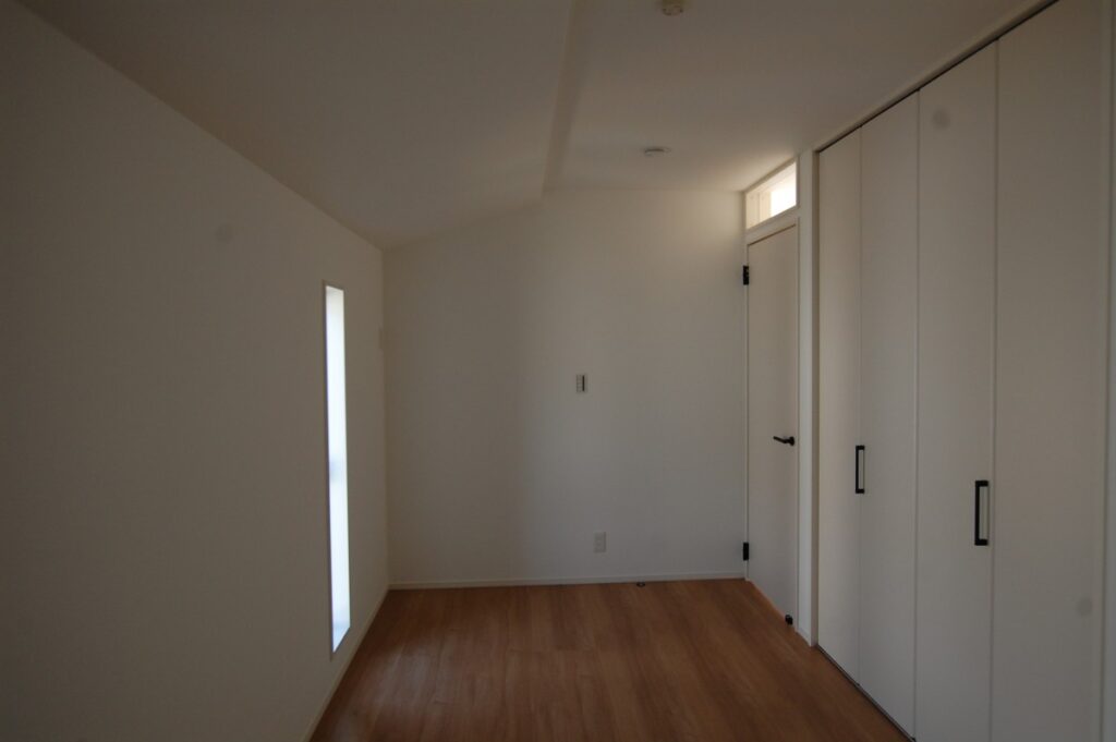 寝室に比べ、主寝室は大人が2人で使うことを前提に大きめの空間にしております。