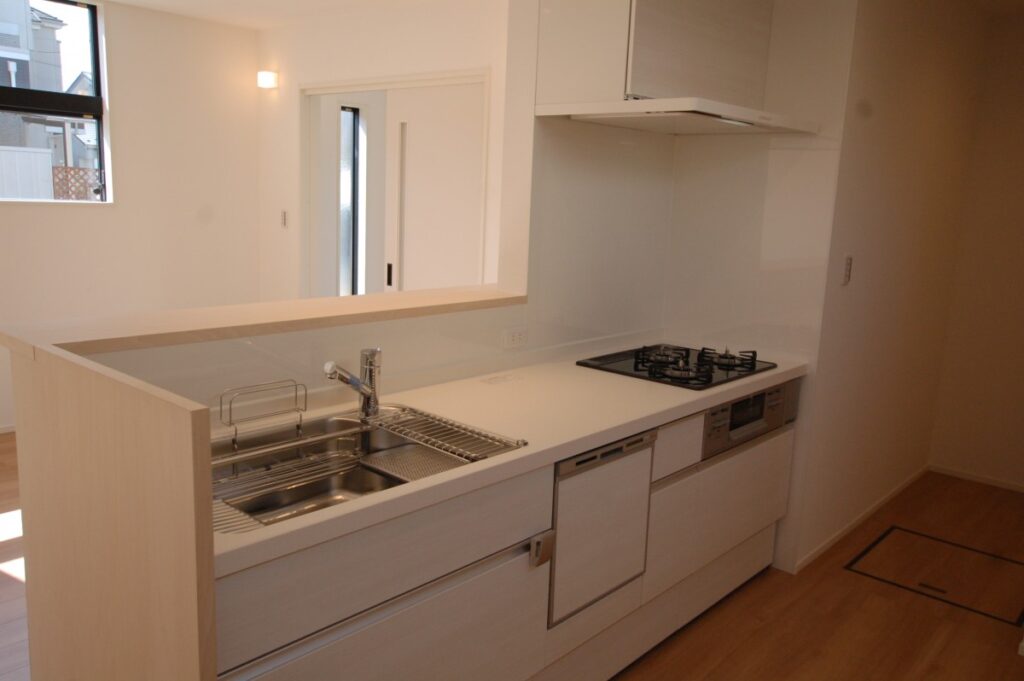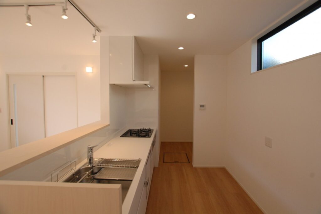 ダイニングキッチンはライティングレールにスポットライト。必要なところに必要な光を配光します。