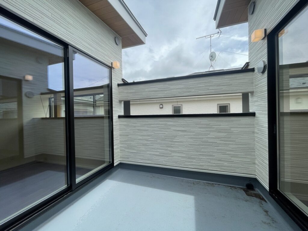 大きなバルコニーは物干しだけの空間ではなく、家族や友人、知人が集まれる家族だけの外部空間としてデザインしています。