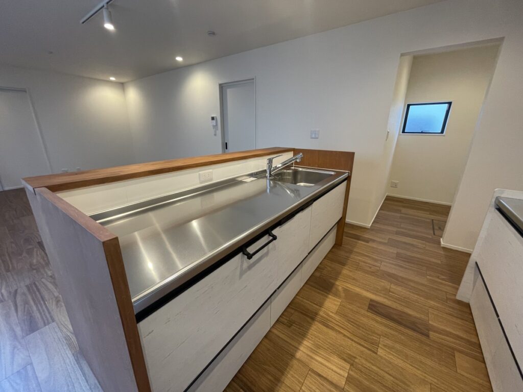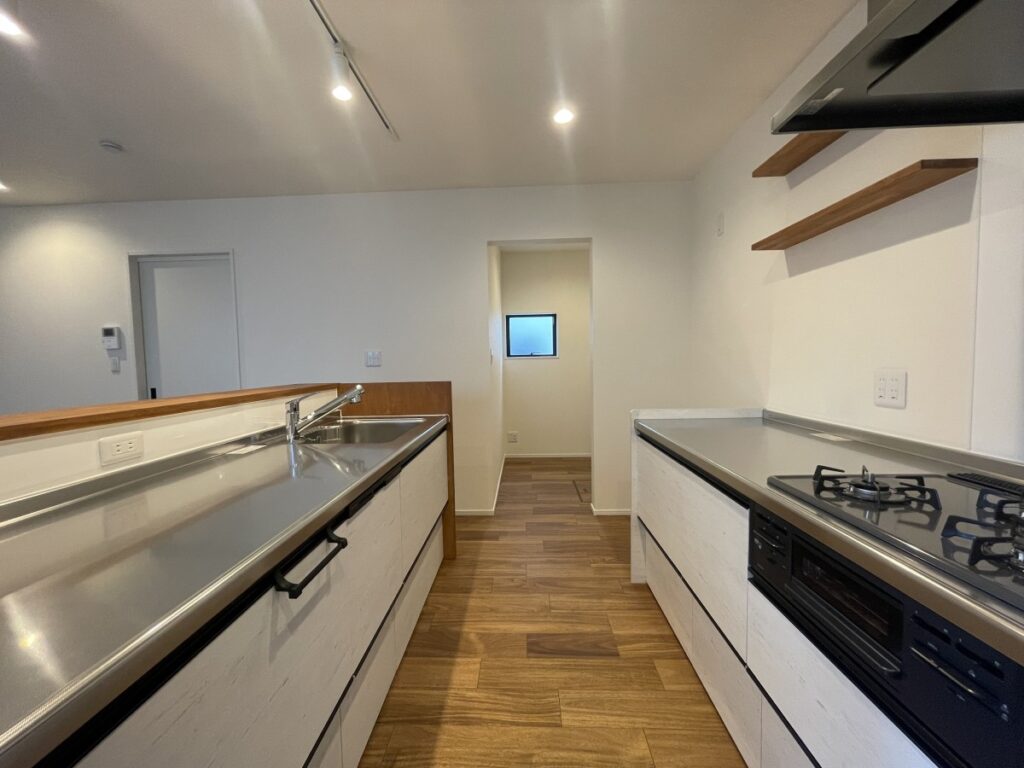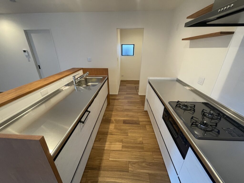 おうち時間の増加で今まで、料理をしなかった旦那様や子供たちが手伝いしやすい様、あえて二の字型キッチンを採用しました。