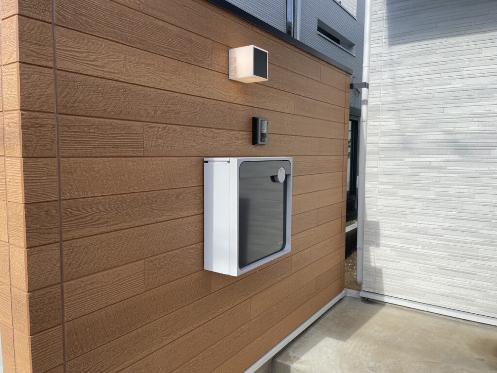 ポスト廻りもこの建物の特性を生かし、機能門柱ではなく目隠し壁を使った造作ポストにしています。