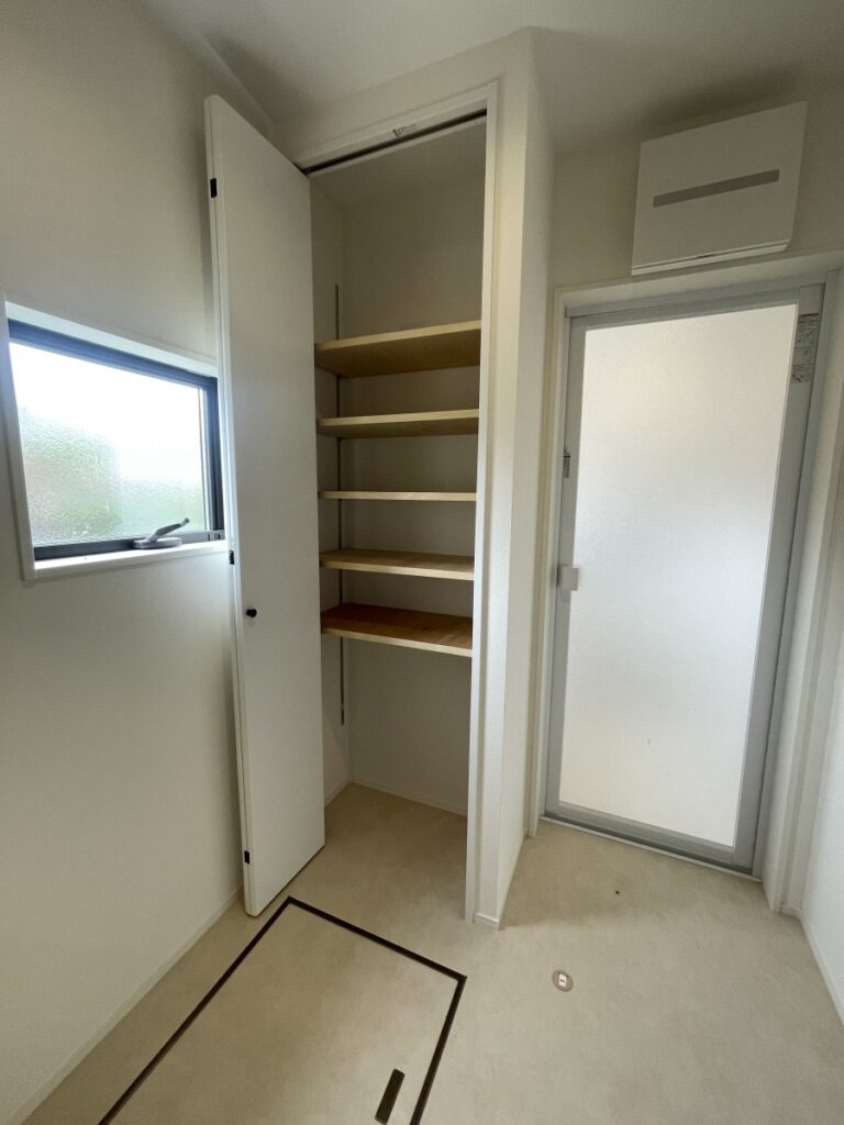 キッチンから外部に繋がる場合は、外にゴミ箱等を設置したくなります。キッチンからパントリーを介して外部に繋がる様にデザインしています。