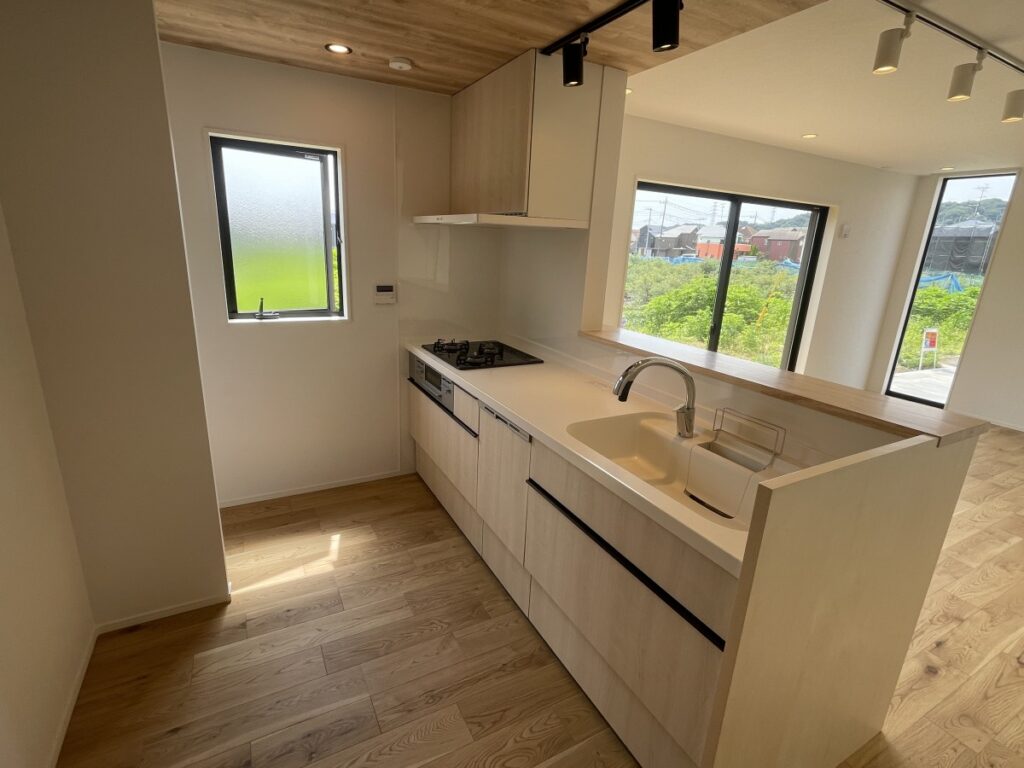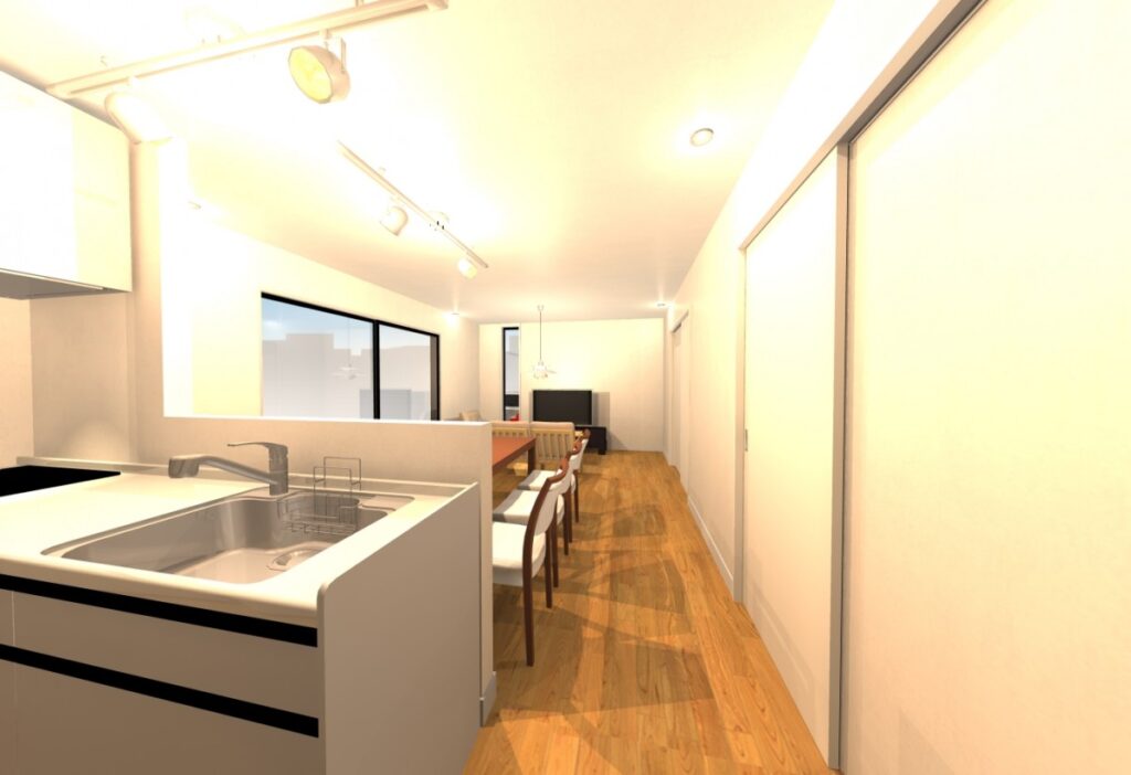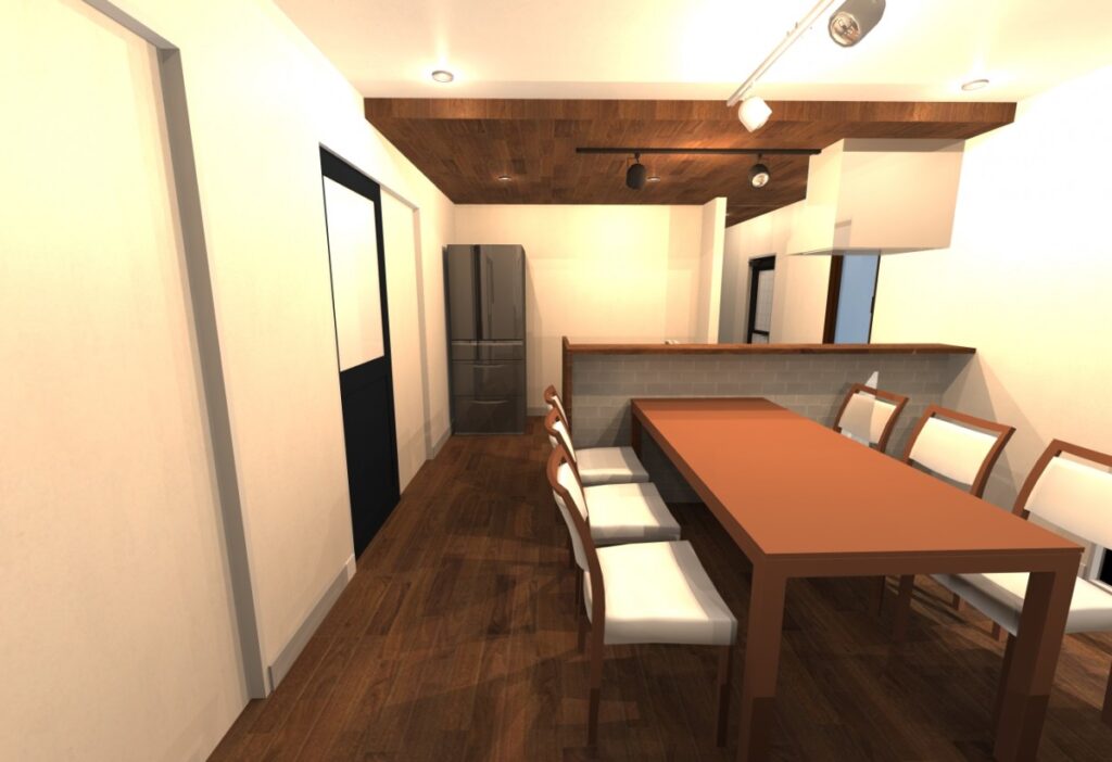 リビングとダイニング、キッチンのつながりは家事導線を検討するうえでとても重要です。家族がどう動くのか?を検討しデザインしています。