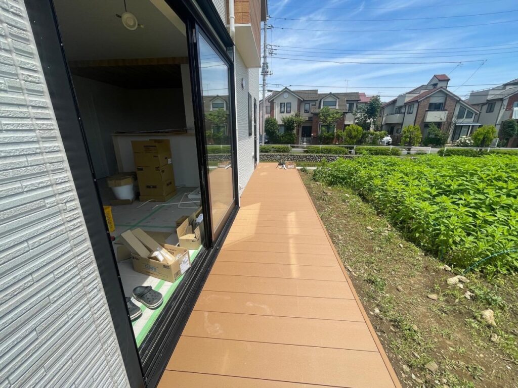 ほぼ床の高さに揃えたデッキをパントリーとつなげることで、外部にゴミ箱の設置でき、地面に下りることなくゴミ置き場にアクセスできます。