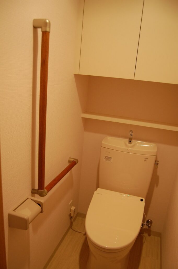 玄関とトイレは手すりの色も視認性を上げるため建具との調和を崩さない程度に濃い色にさせて頂きました。