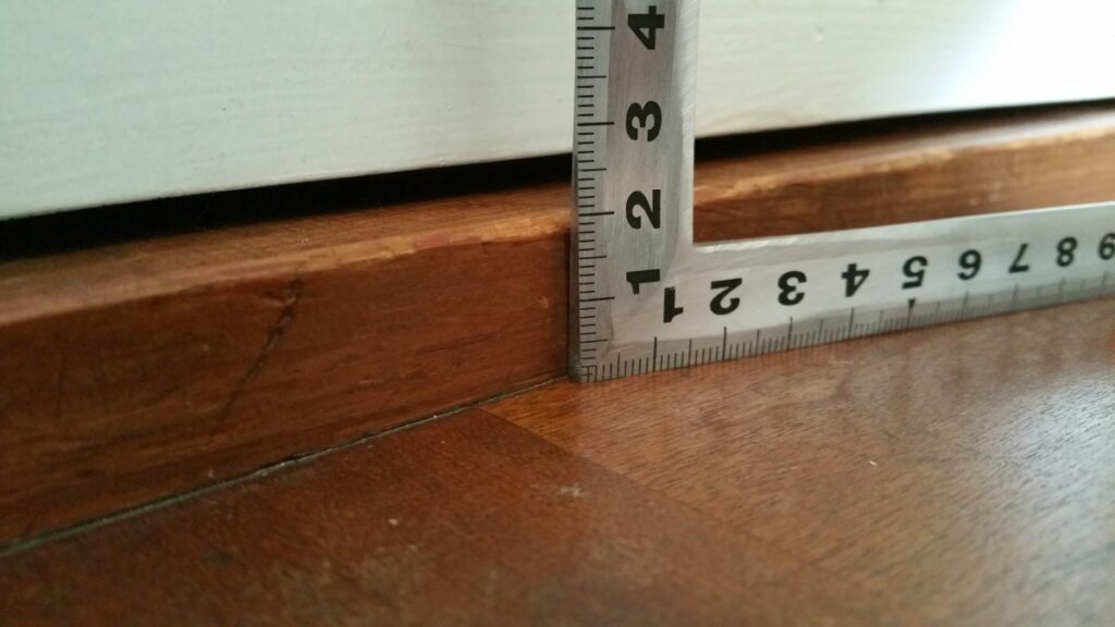 敷居との段差が約20㎜(2㎝)通常のフローリングは15㎜。