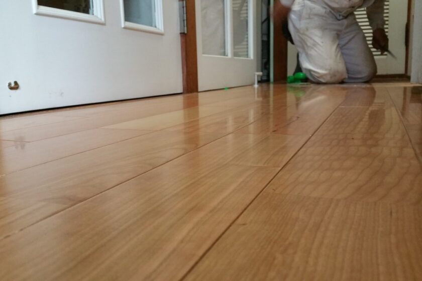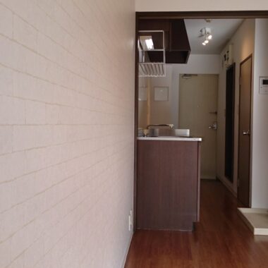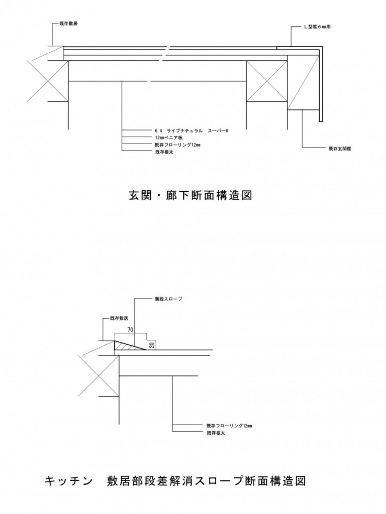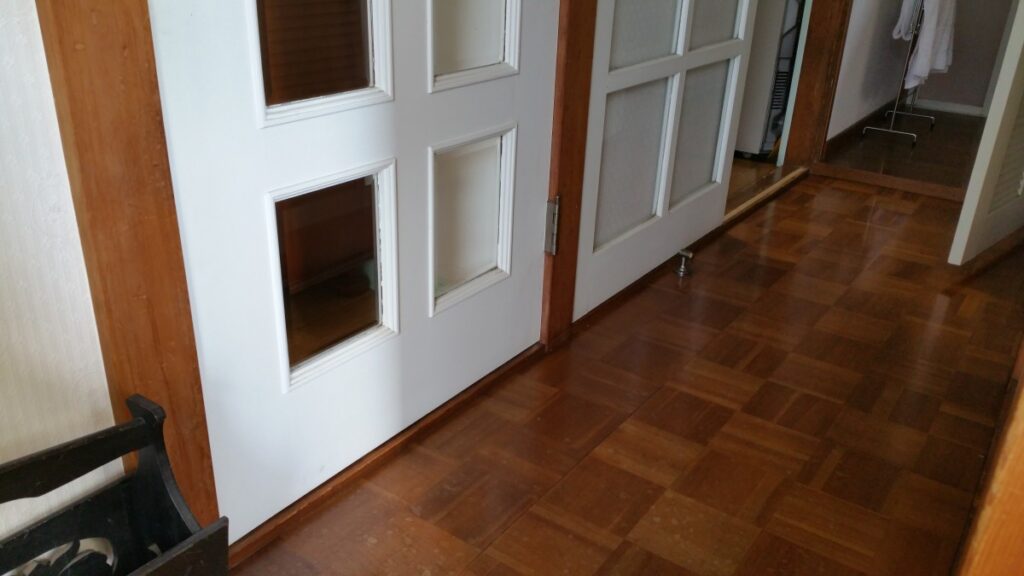 今回の工事では廊下から各部屋に入る為の段差解消工事として廊下の床にフローリングを上張りしました。