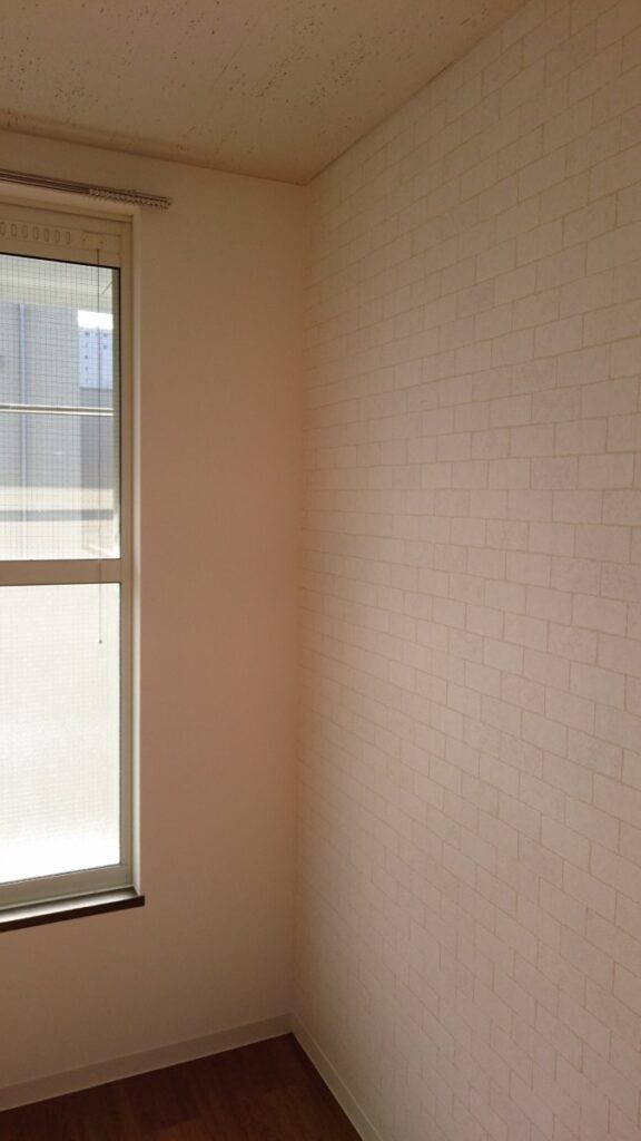 窓と直角の壁に配置することで、窓から入る光がクロスの凹凸をより引き立てます。
