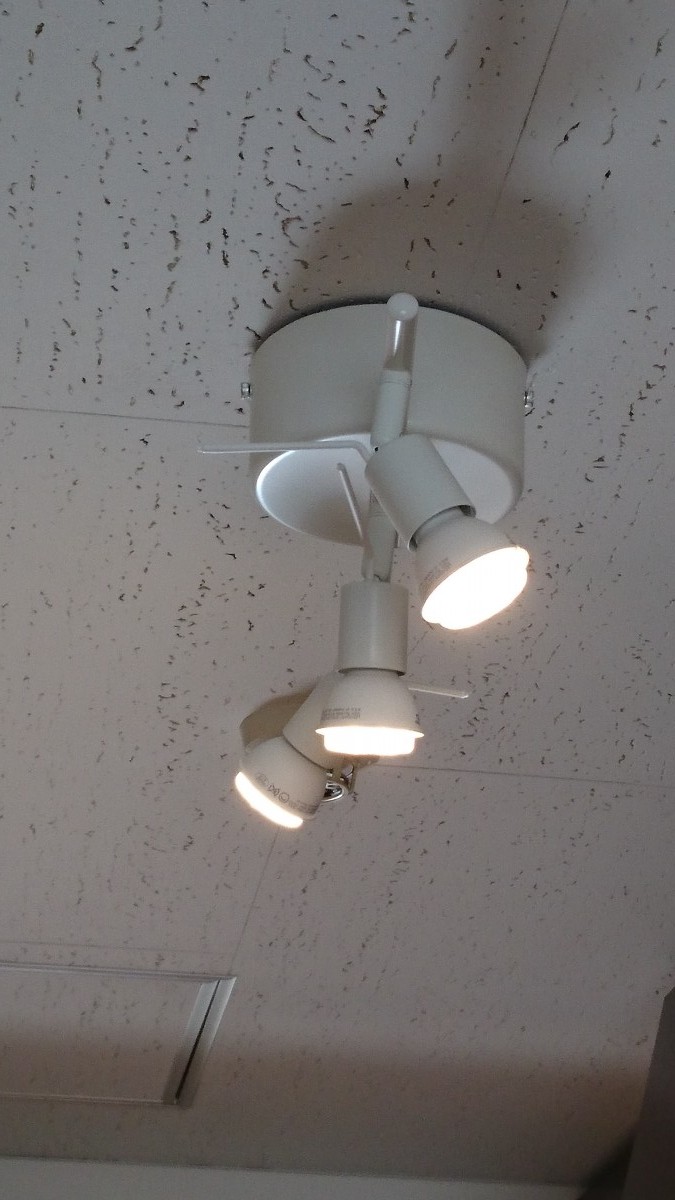 部屋の真ん中にあり、暗く寒いイメージがありますので、少しでも暖かく感じられるように色温度の高い配色にしています。