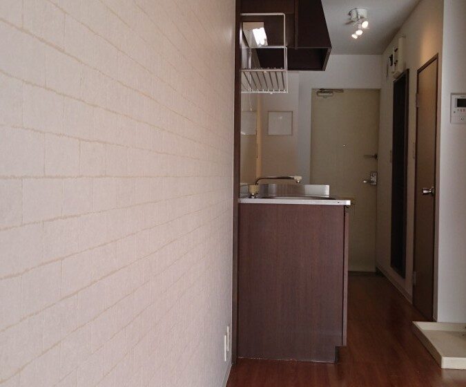 玄関とキッチン、更に居室が一体となった間取りのワンルーム。
