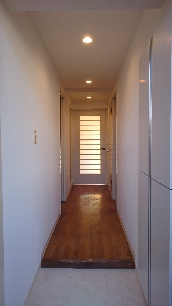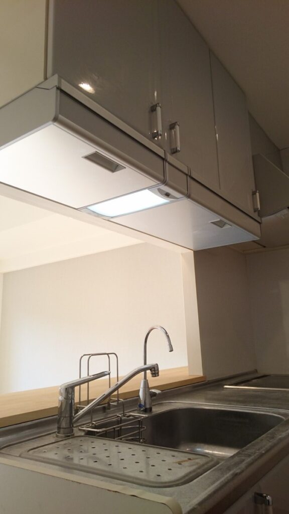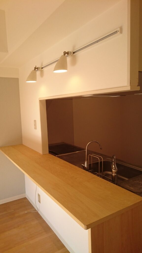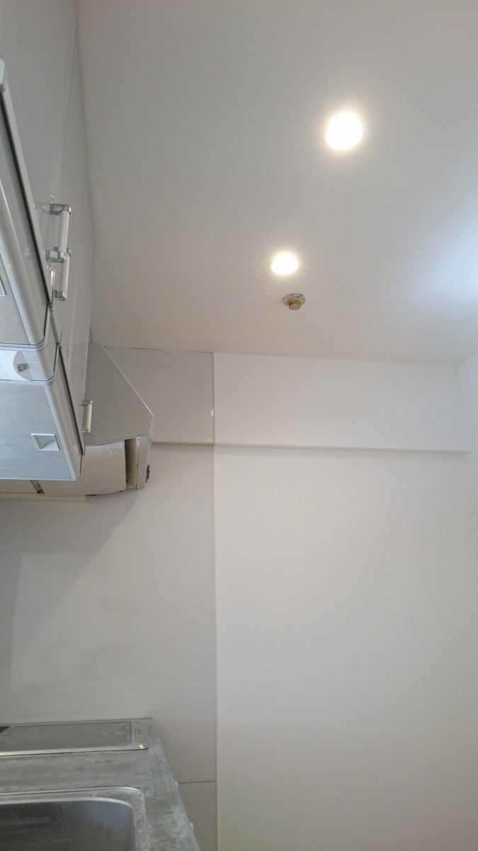 キッチン内の照明器具も直管蛍光灯の照明器具からLEDダウンライトへ。