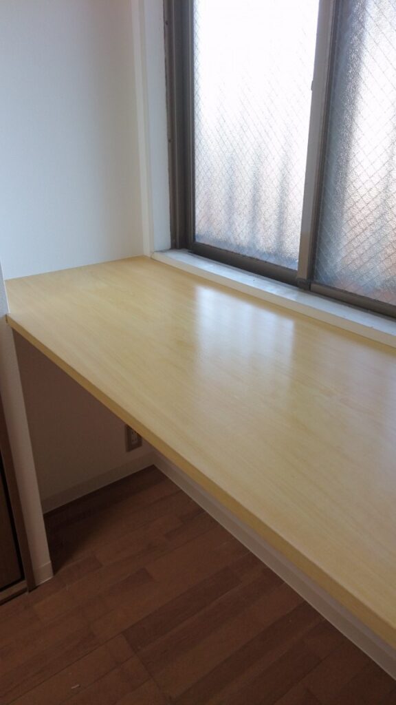 窓際のデッドスペースには大型カウンターがあり、仕事や勉強にも使うことができます。