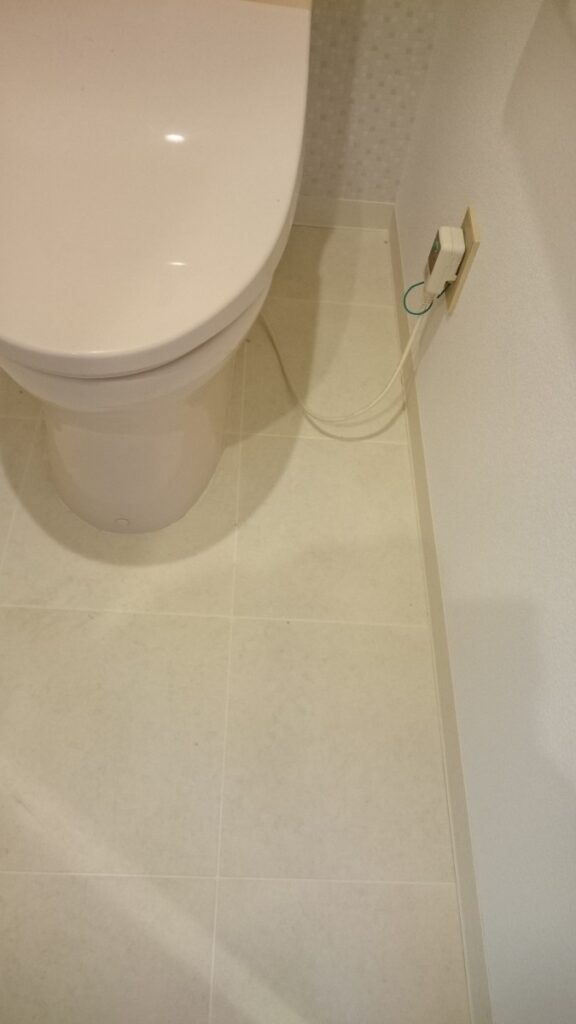 家全体のバランスを考え床はトイレと同じタイル調のクッションフロアとしています。
