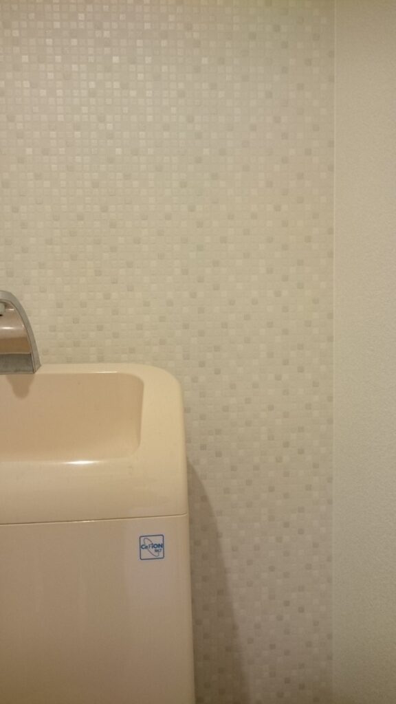 モザイクタイル調のクロス、焼きタイル調のクッションフロアが明るく清潔な空間を演出しています。