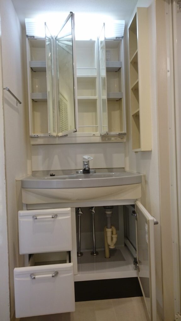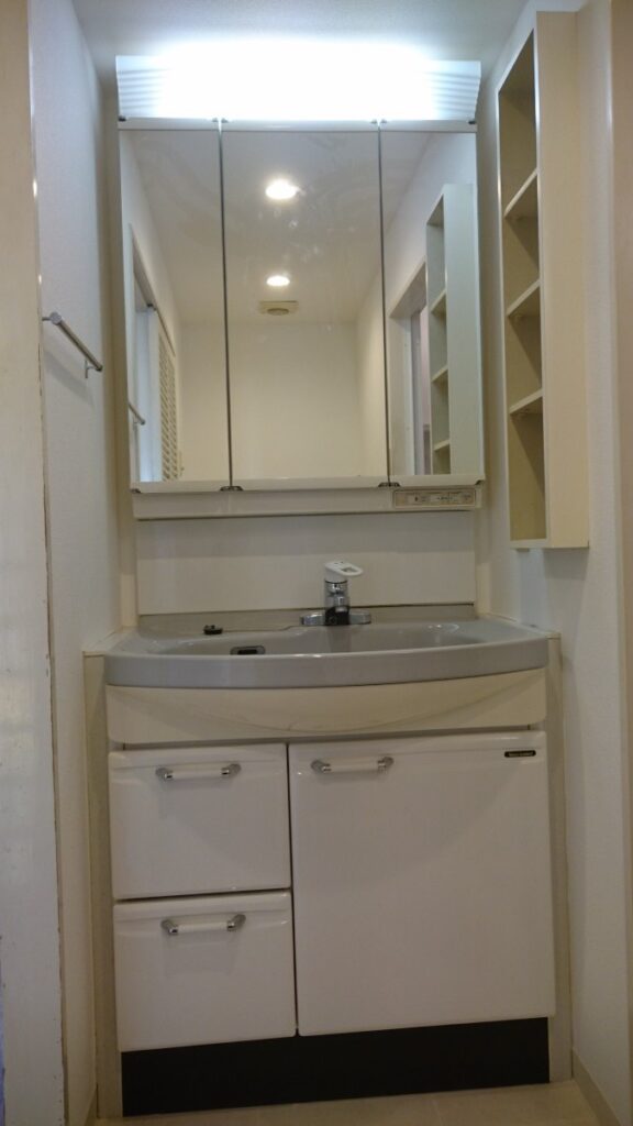 ミラーは3面鏡。収納力もあり機能的ですね。
