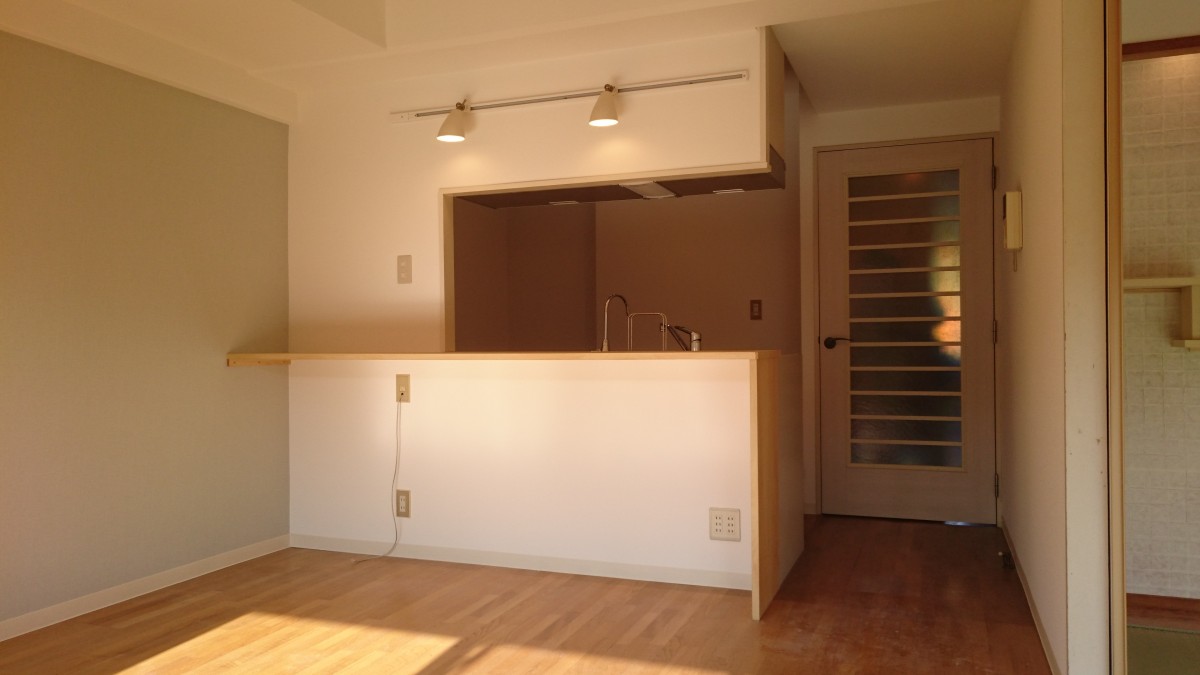 少し小ぶりなLDKはキッチンにカウンターを創ることで朝食などはここで済ますこともできます。