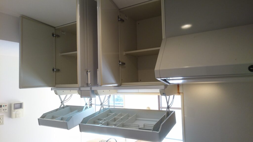吊戸棚には見付けにくカトラリーなどが目線で収納できる『アイラック』。