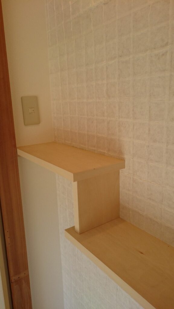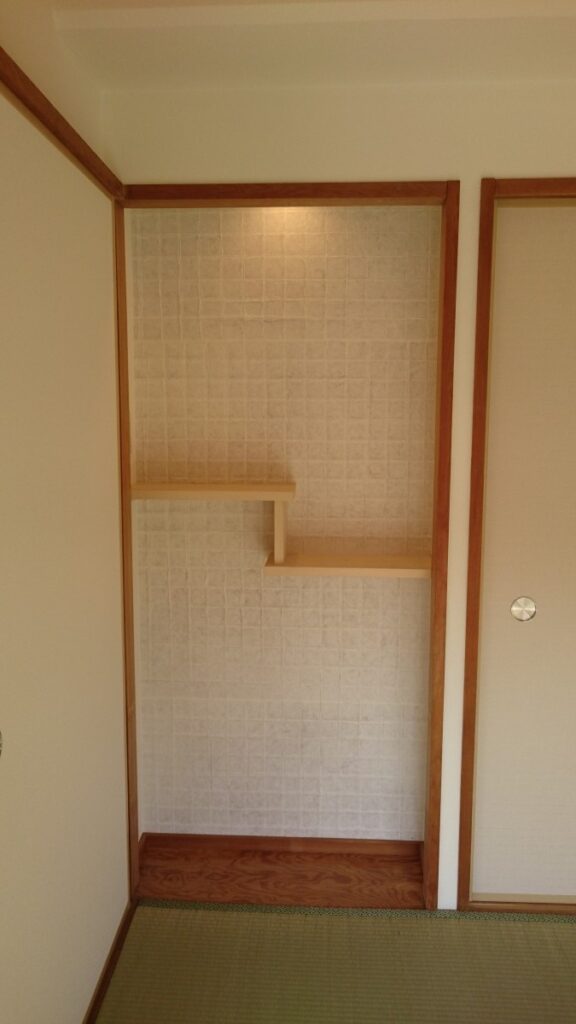 もともと在った時代を感じる浅い収納を思い切って壊し、飾り棚を作成。