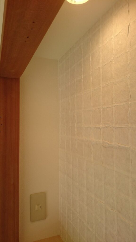 正面のクロスは『和紙職人』の方が一枚一枚丁寧に漉いた『和紙クロス』を使用。