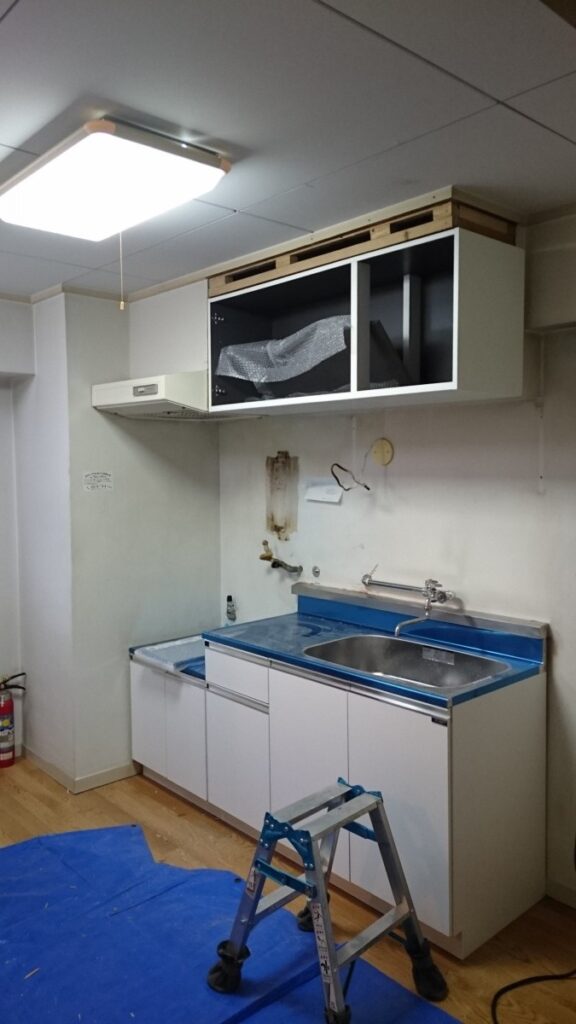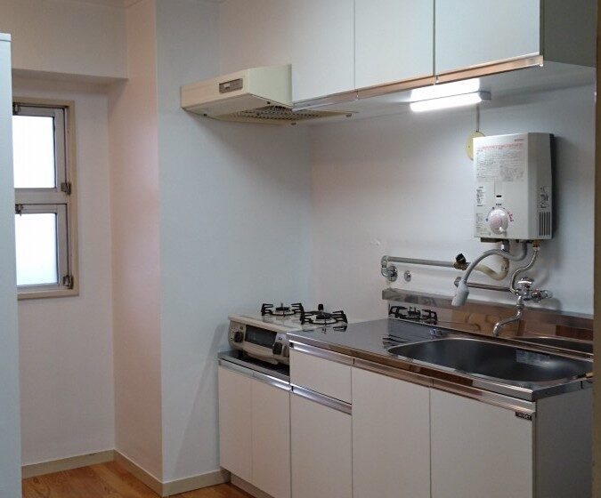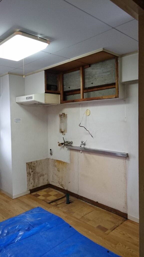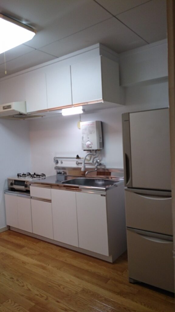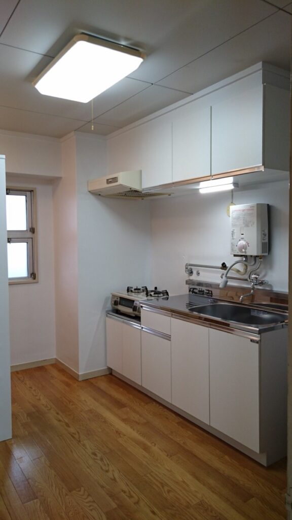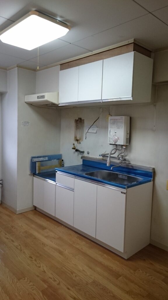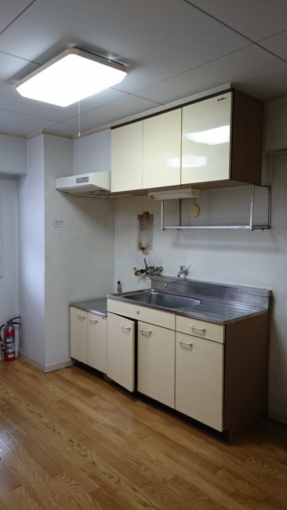 床はクッションフロアに変更され、レンジフードなどは改修されていました。