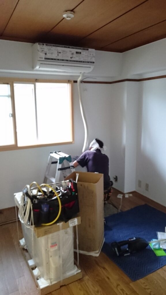 普段はあまり行わないエアコンの設置もさせて頂きました。