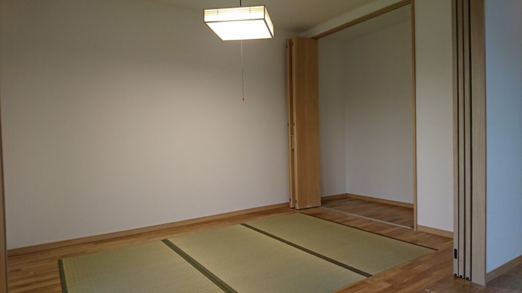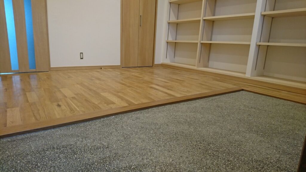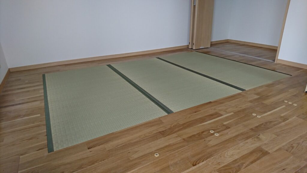 板間と畳の見切りを付けずによりシンプルに見えるようにしています。
