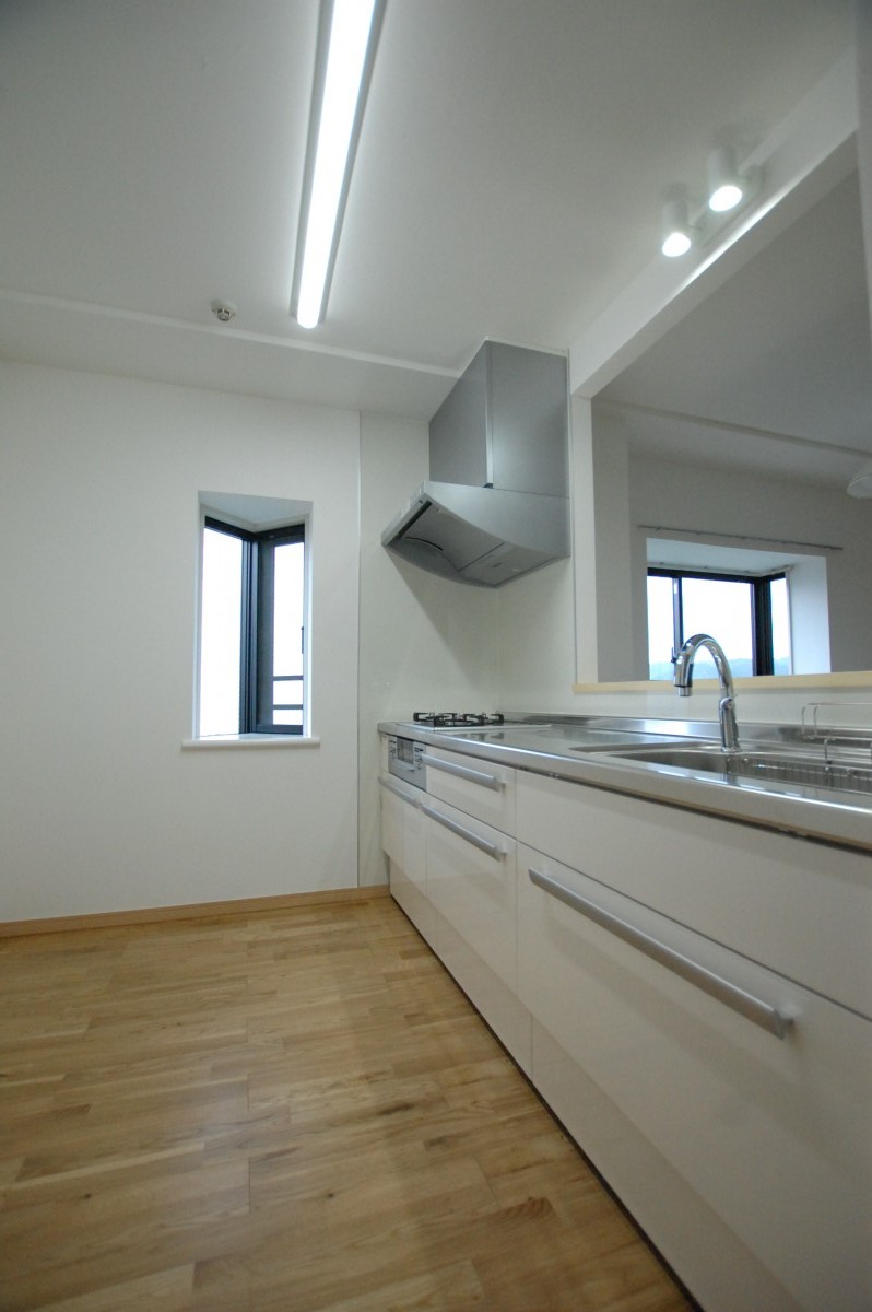 見晴らしの良い景色を楽しめるように、吊戸棚を撤去し、できるだけ開口部を大きくしました。