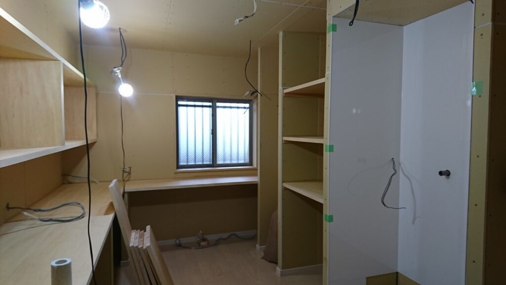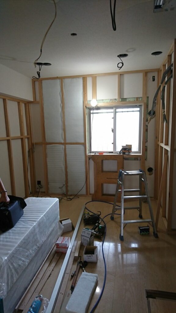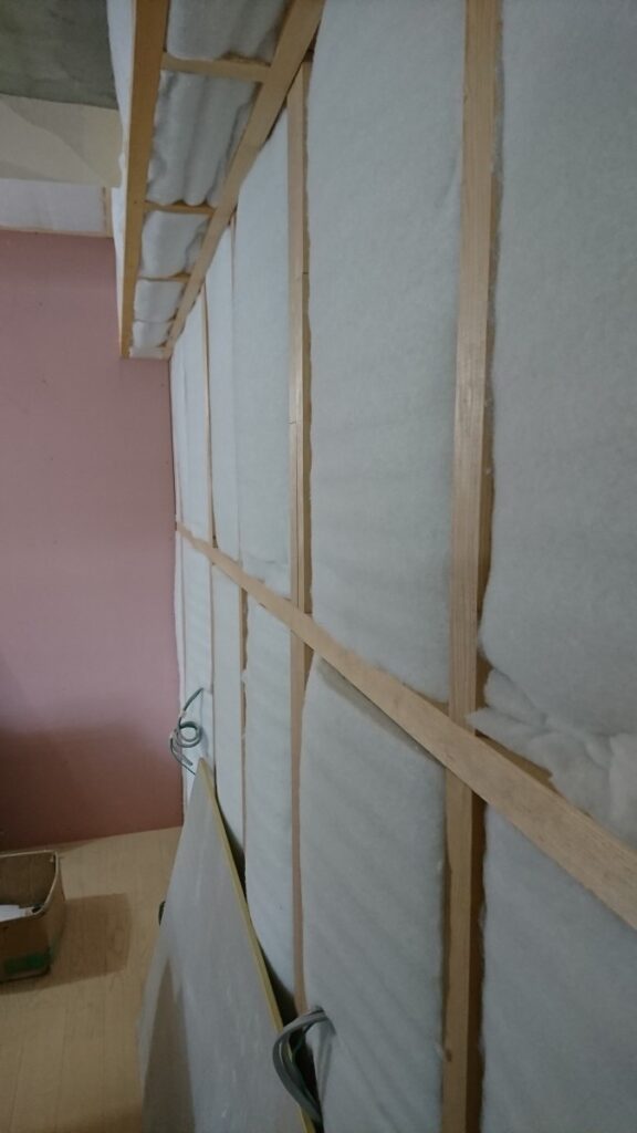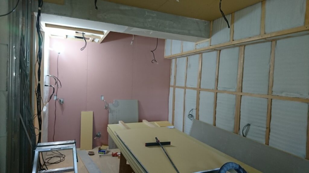 しかし今回の物件は、建物の構造も鉄筋コンクリート造(=以下RC造)である為、かなりの遮音性が期待できますし、メーカーの防音室を作る程の音ではないと思い、お客様に現場で大工工事で施工できる防音工事をお勧め致しました。