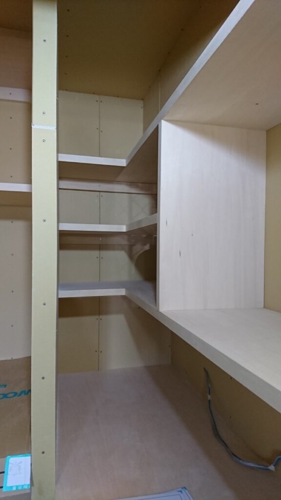 小さな隙間にもL型の棚を設け使えるようにしてあります。(使い勝手は良くないとおもいますが・・・。)