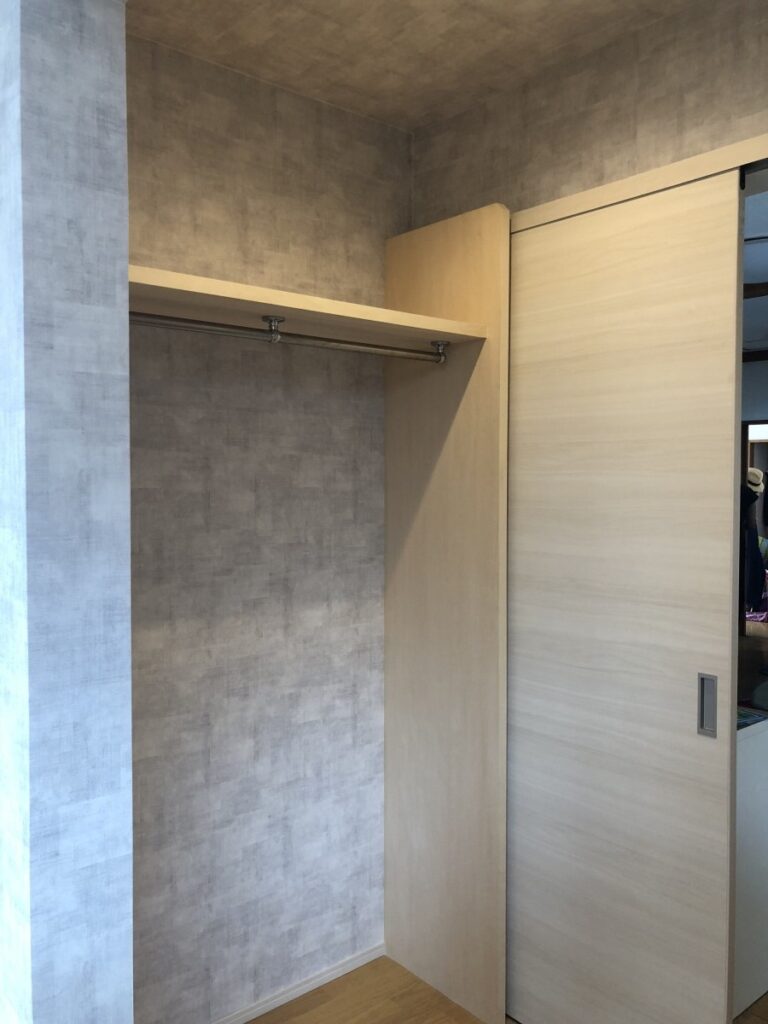 通路と部屋との関係から収納を設ける場所非常に難しくなりました。