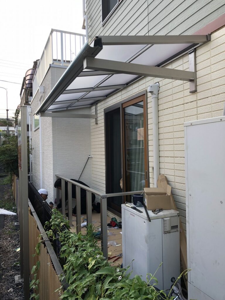 そこで、小さい空間ではありますが新しくウッドデッキとテラス屋根を設置しました。