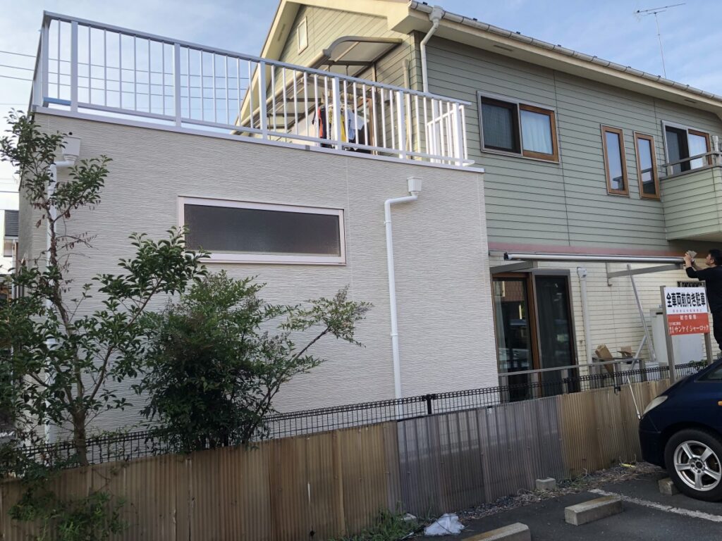 しかし今回は工事予定箇所の直上がバルコニーであった為バルコニーを拡張しルーフバルコニーとすることをご提案させていただたきました。