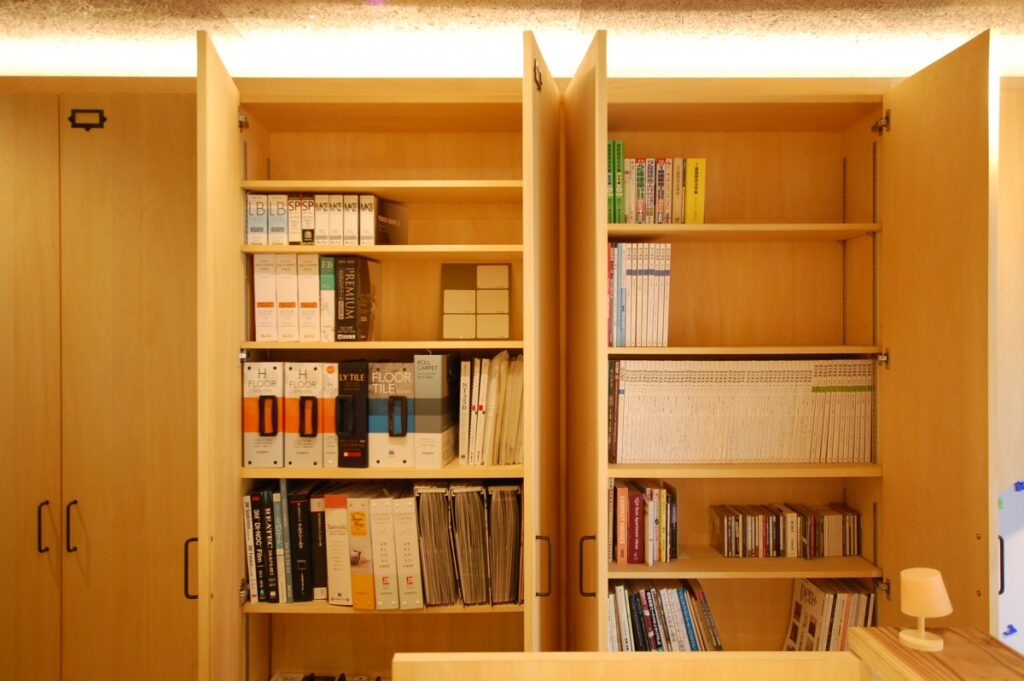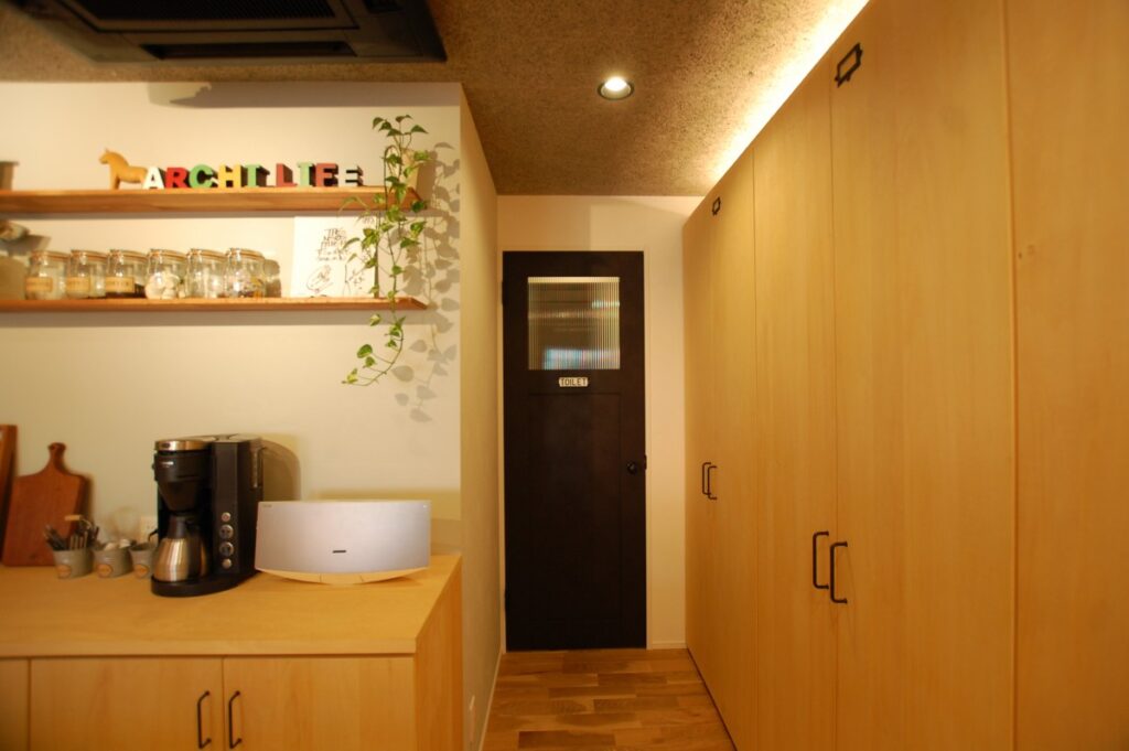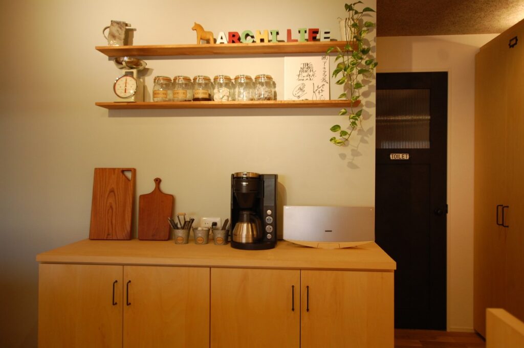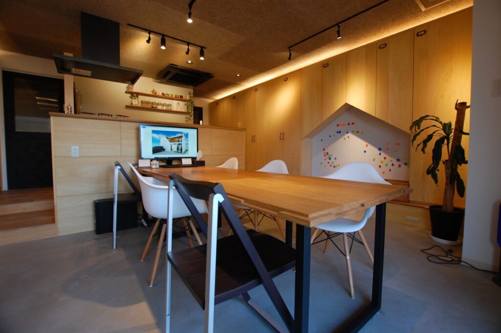 今年の3月頃、事務所が狭くるしくなって来た為、お隣の店舗を借り打合せを行う場所とショールームを兼ね備えた空間を作ってみました。