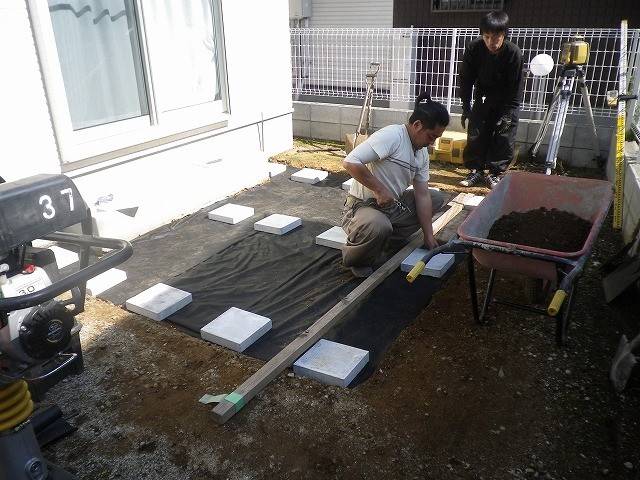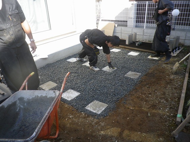 墨出しを行い最後に砕石を入れ地ならしを行いました。