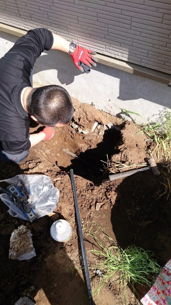 まずは、埋設された水道管を探します。これは所謂『カン』と『経験』です。