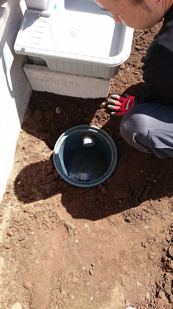 更に、下水に直接繋いだ場合は、下水の臭いが上がってきます。それを防ぐためにこの溜枡は『トラップ』の役目もしています。