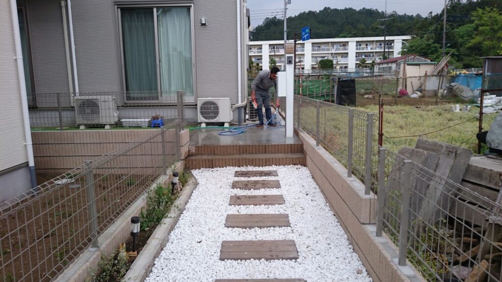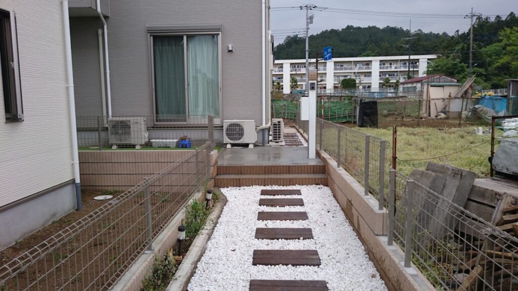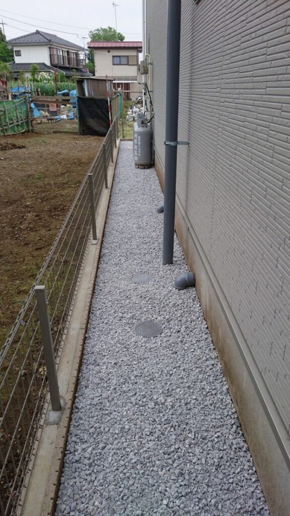 その他には、北側の通路部に防草シート及び白砂利を施工させて頂き、今回の工事は終了となりました。