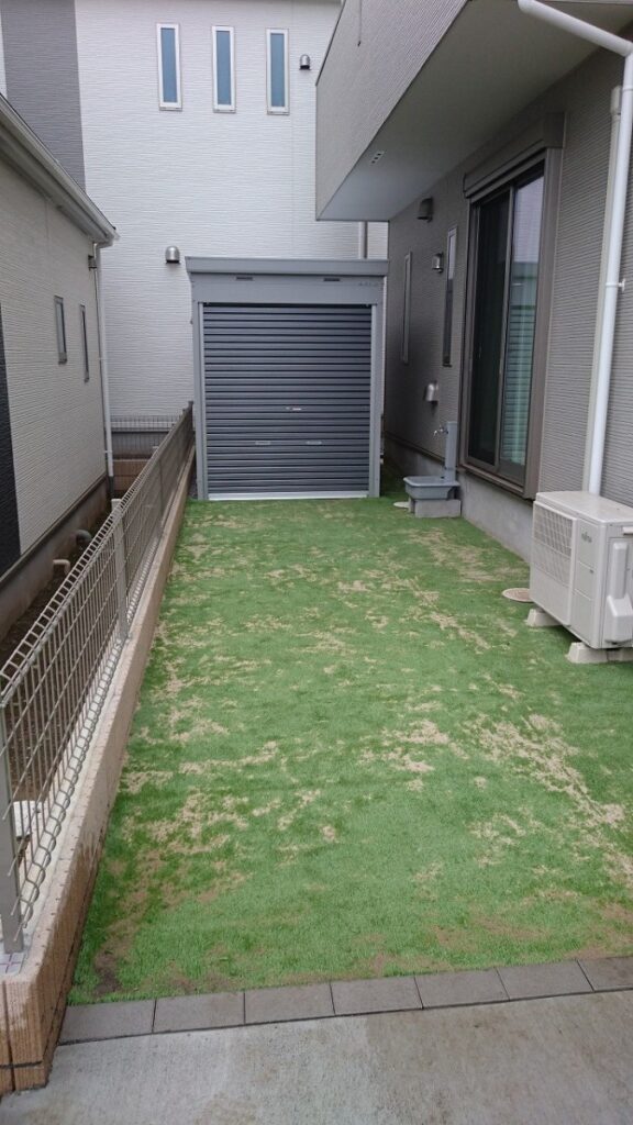 これでどんな季節でも青々としたお庭になります。お子様たちが遊びまわれるようになったお庭には、私も魅力を感じるものがありました。