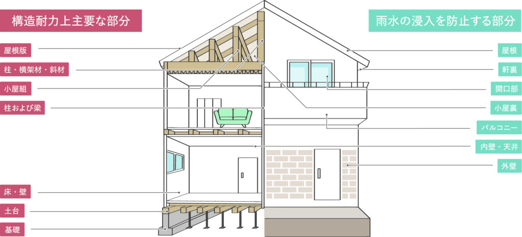 現在、新築住宅には『瑕疵担保履行法』により、『構造上主要な部分』と『雨水の侵入を防止する部分』に関しましてお引渡しから10年間は保険(瑕疵担保責任保険)を掛けることが義務付けられております。