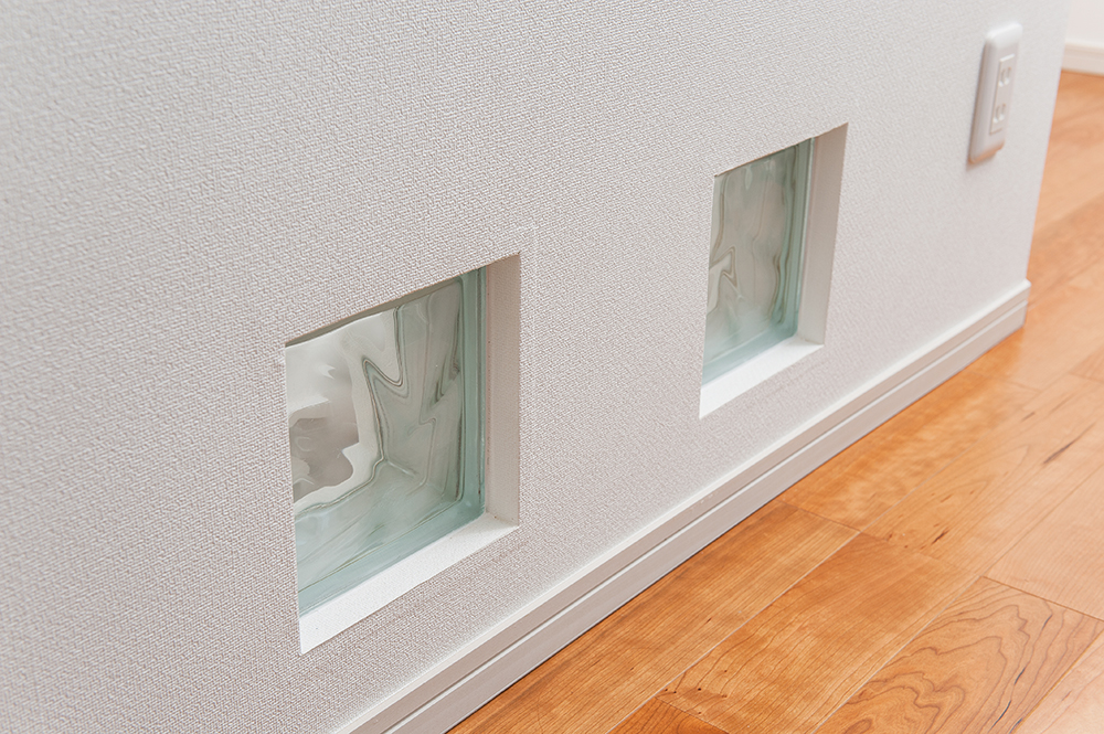 2階廊下などに使用した窓は足元までガラスの為、物凄い開放感と少しの緊張感を住む人に与えます。
