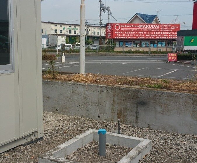 瑞穂町にある大手の観光バス会社様のご依頼で事務所の外に『仮設トイレ』を設置させて頂きました。 普段のお仕事とは全く違う部類のお仕事ですが、これはこれで面白いお仕事です。 ただ、仮設トイレを設置するというのではなく、『どこの位置に設置すれば最適か?』など検討することがシンプルなだけに奥が深いお仕事でした。 位置を決めるにあたり、 ・従業員の方の駐車場をなるべく広く確保できるように ・万一の為にメンテナンスが出来るように ・視界に視界に入りづらく、近隣からもあまり気にならないように ・給排水設備工事が出来るだけ簡単にできるように(コストダウン) ・事務所から近い位置で使いやすいように など、敷地が広いだけに考え出すとキリがないくらい深いものでした。 この位置をご提案し、ご理解、ご納得を頂けましたのでここに設置工事を行います。