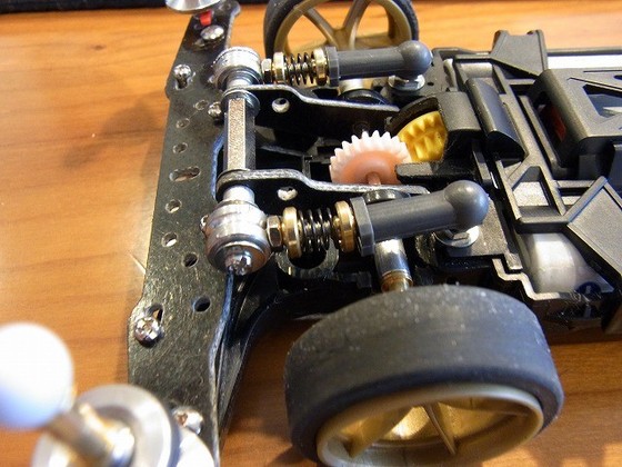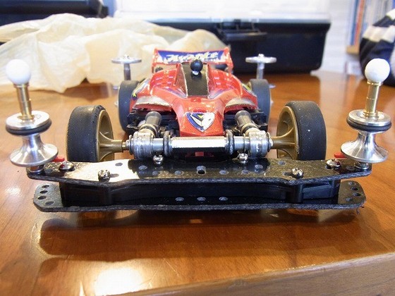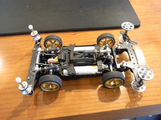 最近の記事が仕事の話ばかりだったので息抜きをします。 最近自分のなかで大流行のミニ四駆。 ついにサスペンションを載せることにしました。 ミニ四駆にサスペンション?と思われる方・・・。 多いと思います。わたしもその一人でした。 では、お披露目します。