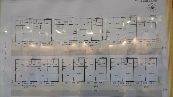 上記図面の下段は同じ間取りの繰り返しですが、上段は少し大きな間取りもあります。