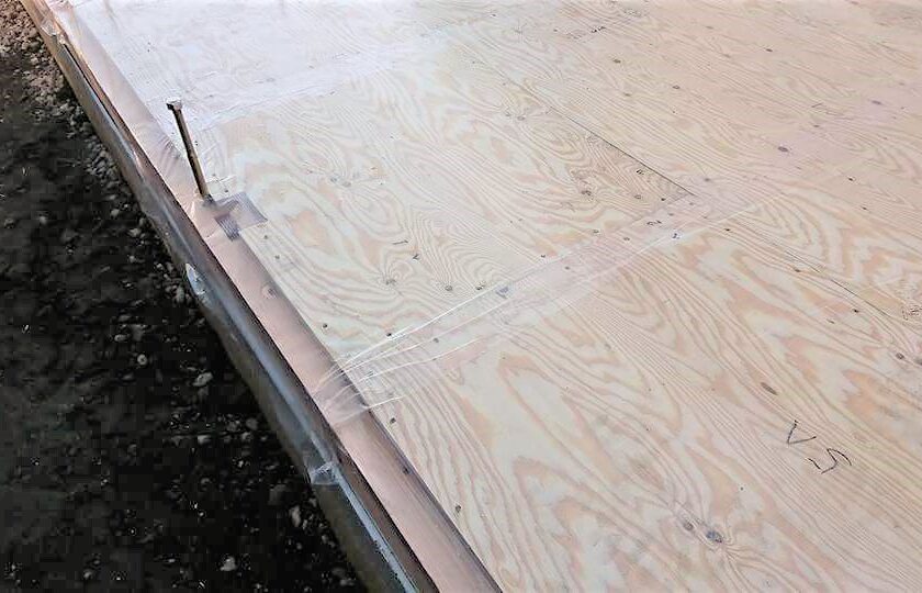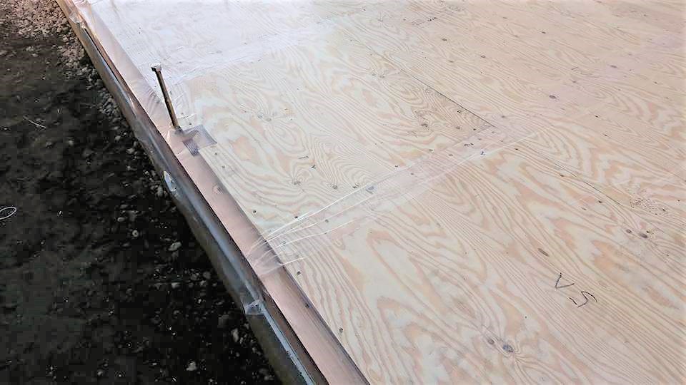 仕上げに水分が木部に浸透しないように透明のシートを一面に敷いて